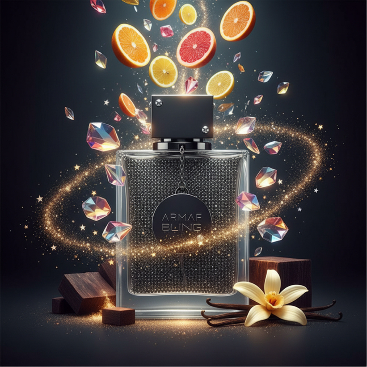 Inspired by the high-gloss world of Dubai Bling, Club De Nuit “BLING” was co-created by entrepreneur and luxury tastemaker Ebraheem Alsamadi, in collaboration with ARMAF’s founder and master perfumer Dr. Ali Asgar Fakhruddin. Together, they crafted a fragrance that captures Dubai’s radiant ambition, glamour, and magnetic elegance.. BLING opens with a luminous burst of citruses, bright, crystalline, and full of energy. It softens into a delicate flower prism and stardust accord, then settles into creamy vanilla and velvet woods. A journey from brilliance to softness, from celestial shimmer to grounded elegance.